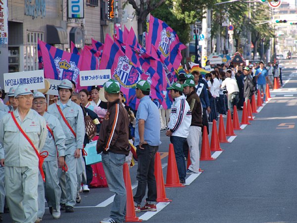 左写真左下の方は同学校の歴史の先生で、中川青指のメンバーでもあり、そのつながりでパレードに参加することになりました。