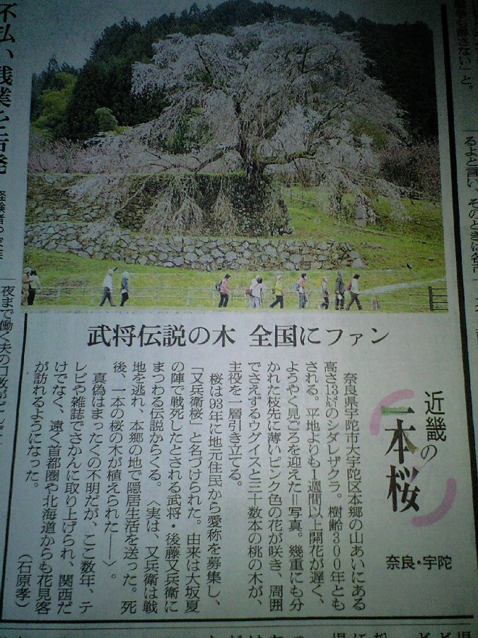 奈良県宇多市大宇陀本郷にある、又兵衛とゆかりがあるかもしれない桜。