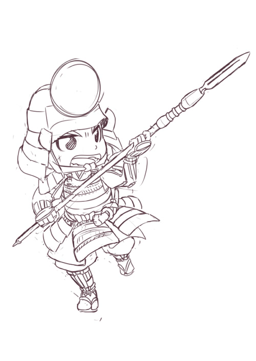後藤又兵衛はやっぱりこっちの甲冑になりました。ポーズは前回のラフそのまま。