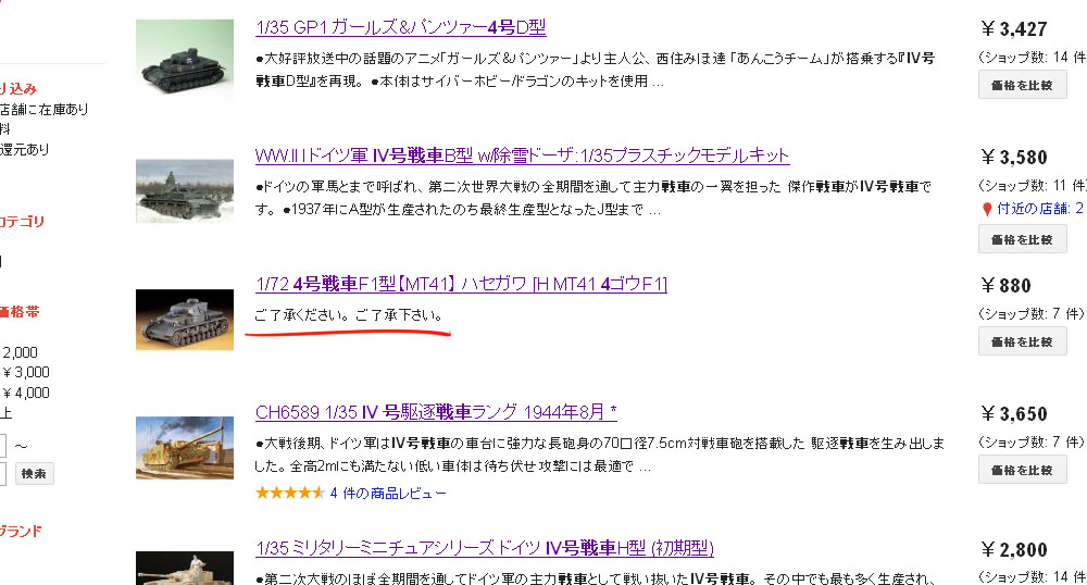 ガールズ&パンツァー」に煽りを受けて「4号戦車」でショッピング検索(google)したら・・・・・・