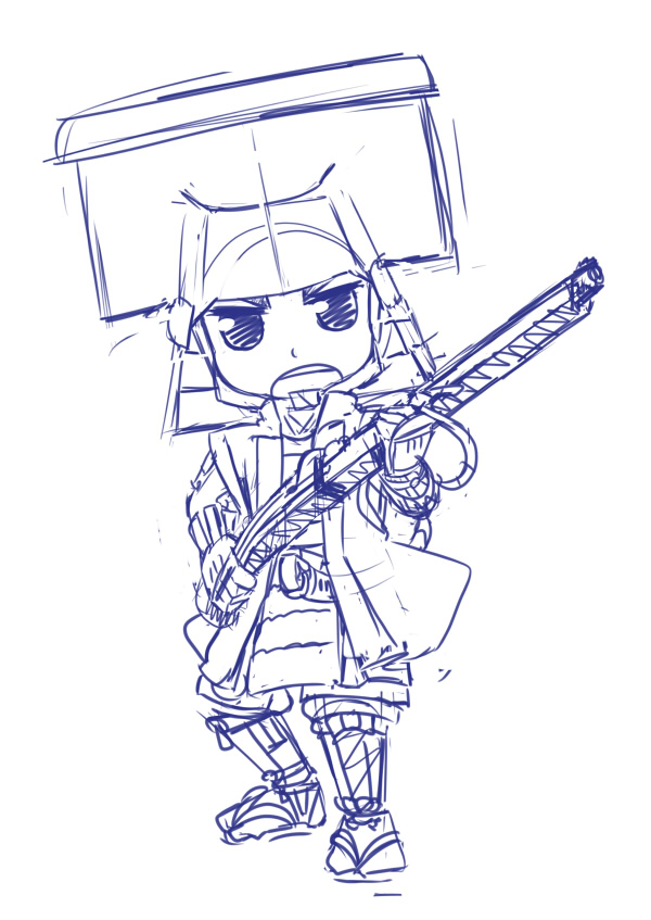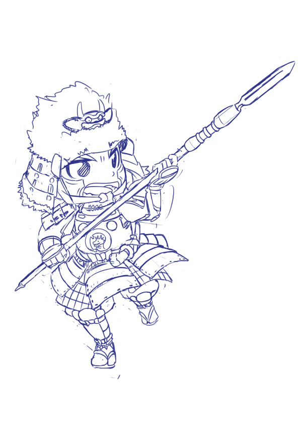 後藤又兵衛はやっぱりこっちの甲冑になりました。ポーズは前回のラフそのまま。